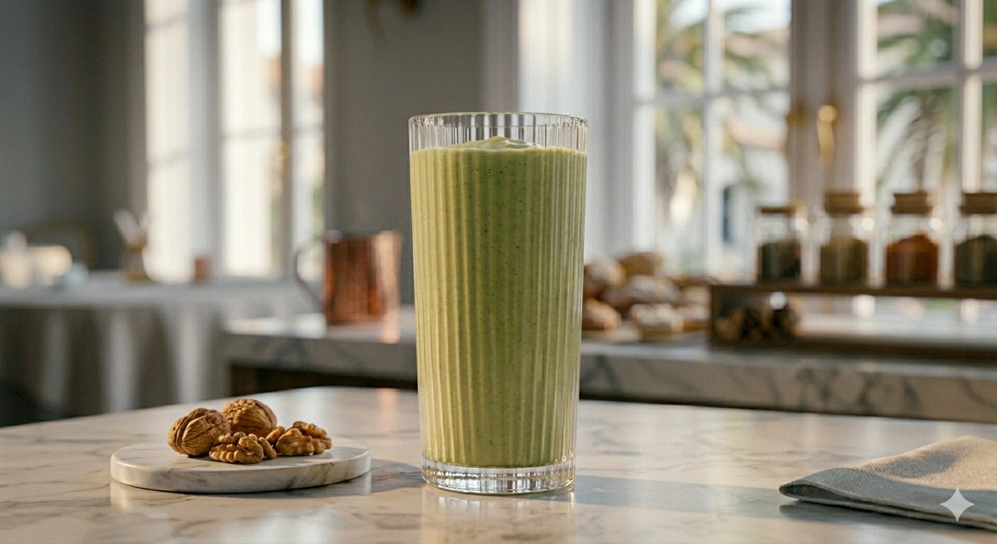 The creamy, luxurious texture comes from ripened avocados and bananas, which provide a rich source of healthy monounsaturated fats and potassium without the need for dairy thickeners. To pack a punch of micronutrients, we blend in a generous handful of organic baby spinach, offering a deep emerald hue and a high concentration of iron and antioxidants. The final touch is a generous addition of crunchy walnuts, providing essential Omega-3 fatty acids and a nutty, textured finish. The result is a vibrant, earthy, and exceptionally clean-tasting smoothie that fuels your body and brain simultaneously.