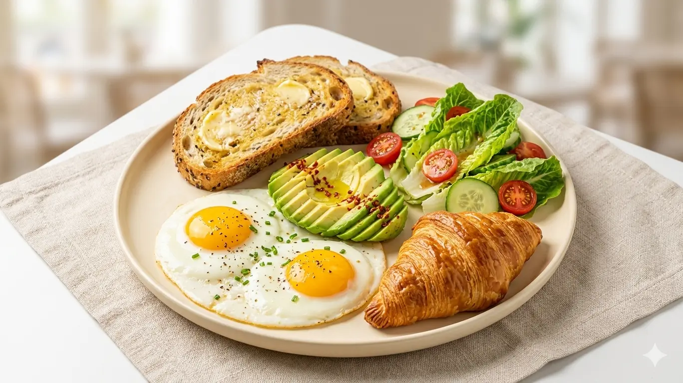 True to its name, The Sunshine Breakfast is designed to bring a bright, energizing start to your morning. This plate is a celebration of fresh, whole ingredients and vibrant textures. At its heart are two farm-fresh eggs, prepared to your preference, served alongside a generous portion of creamy, hand-sliced Hass avocado.